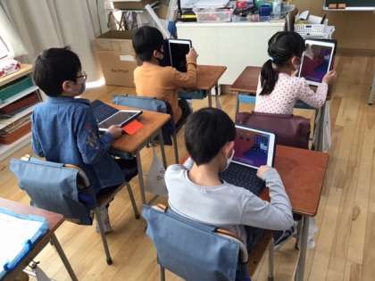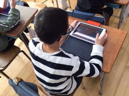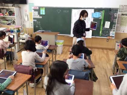 生活科の時間です。iPadの使い方について、先生から説明がありました。学びの世界を広げてほしいと思います。