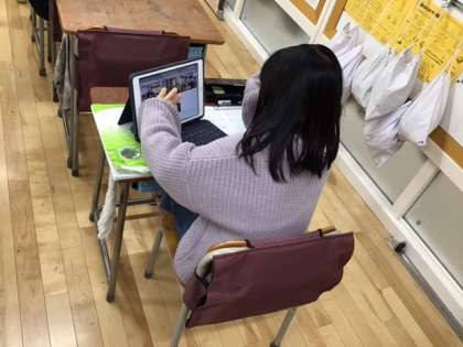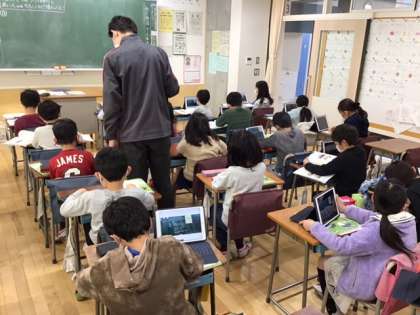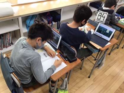 社会科の時間です。「公共しせつのうつりかわり」前時の振り返りにiPadを活用しています。