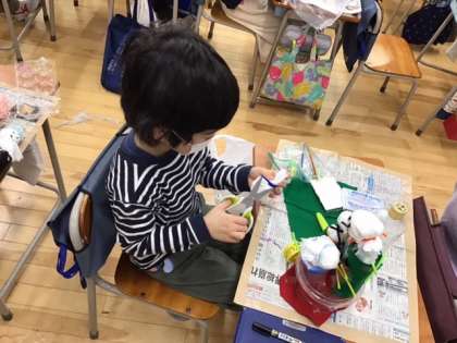 図工の時間です。「ピコリン星 ゆめのステージ」次々と作品が出来上がっています。