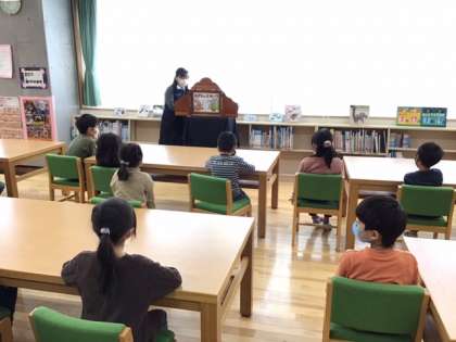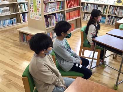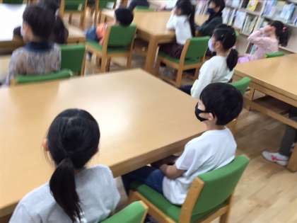 国語の時間です。司書の先生が、「ねずみのよめいり」の紙芝居をしてくれました。