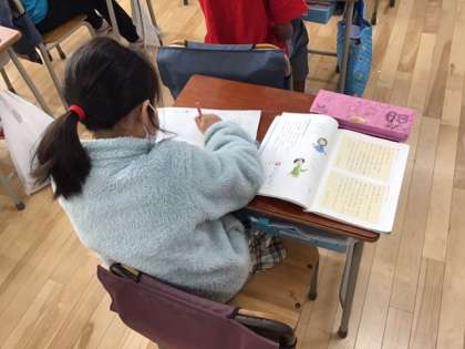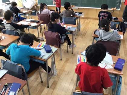 国語の時間です。クラスの友達のすてきなところを手紙にして伝えます。