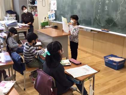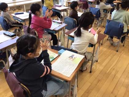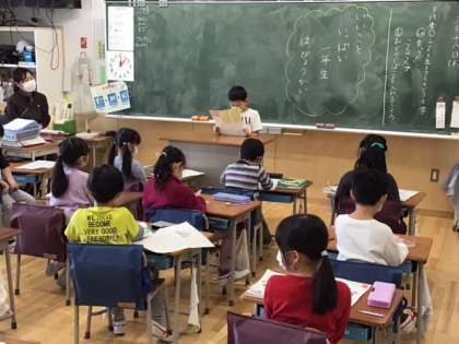 国語の時間です。「いいこと いっぱい 1年生」今日は、発表会です。入学式や運動会など、たくさんの思い出が発表されました。