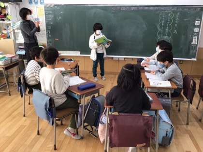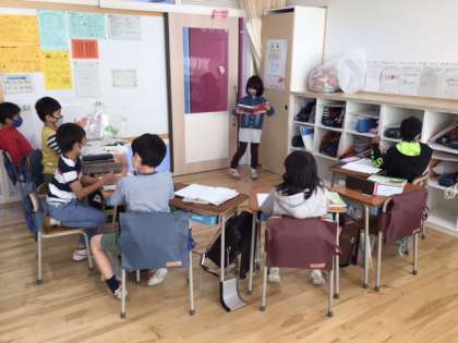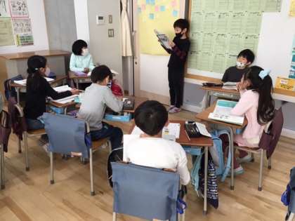 国語の時間です。「スーホの白い馬」お互いに感想を発表し合っています。