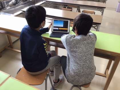 総合的な学習の時間です。映像編集も最終段階に入りました。子どもたちは、すごいですね。
