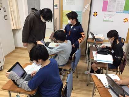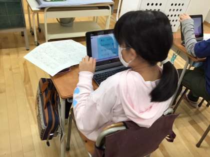 総合的な学習の時間です。縦書きの文章を横書きに、横書きの文章を縦書きに直すトレーニング中です。
