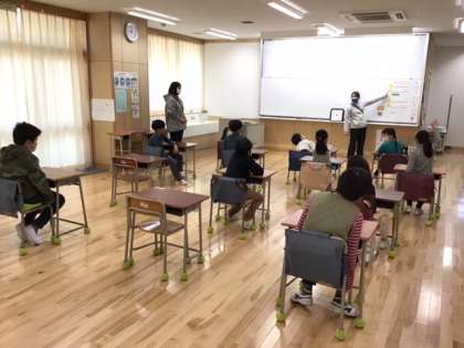 担任の先生の紹介のあと、新しいグループ分けや生活単元などについてお話がありました。