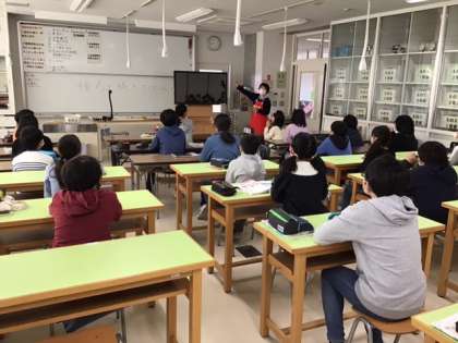 家庭科の時間です。今年も中田先生が教えてくださいます。楽しみですね。