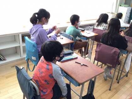 国語の時間です。学習の広げ方、深め方について、担任の先生からお話がありました。