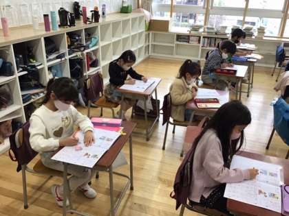 国語の時間です。集中して漢字の学習に取り組んでいます。