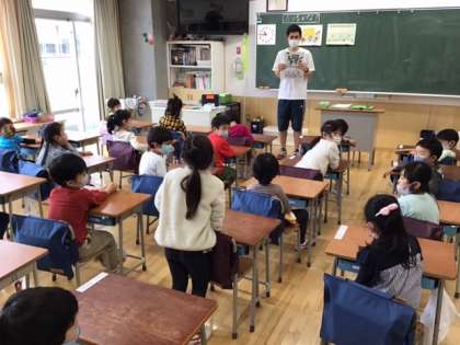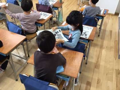 算数の時間です。「たりるかな?」質問の仕方、プリントの配り方も上手です。