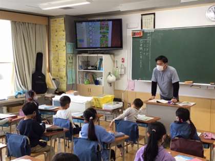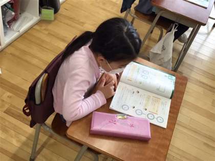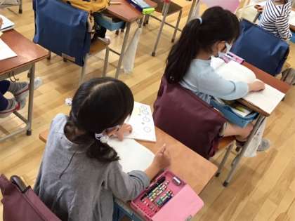 算数の時間です。「時こくと時間」の学習です。ノートのとり方を確かめています。