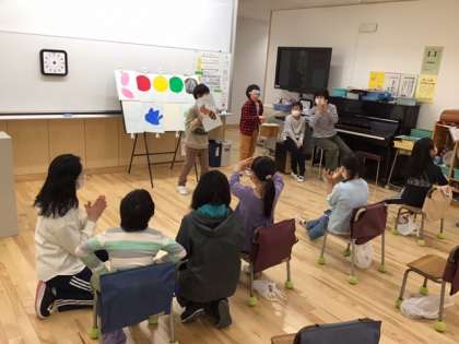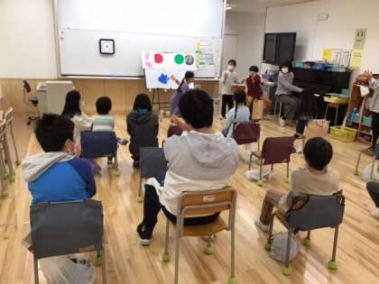 音楽の時間です。きれいな色の風船を選んで裏返すと、そこには何があるのかな?