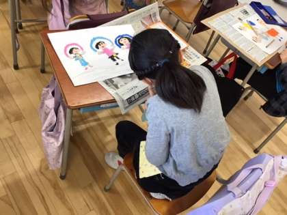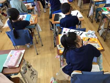 図工の時間です。好きなこと、得意なことの絵を描いて、これから発表会をします。