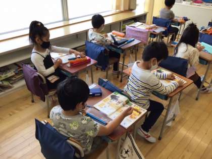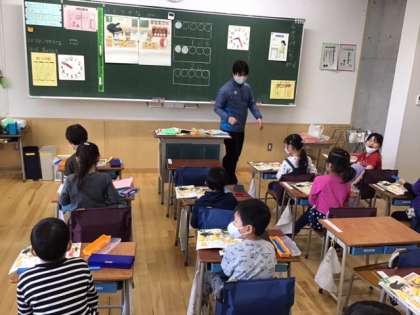 算数の時間です。「いくつかな」今日は、1から5までの数を数える学習です。