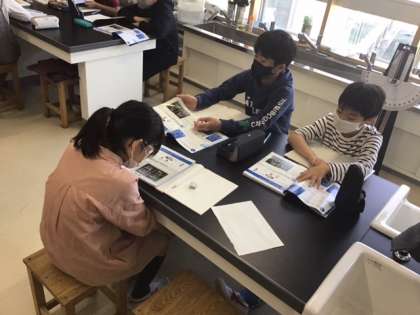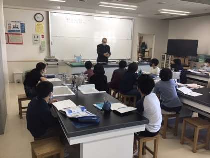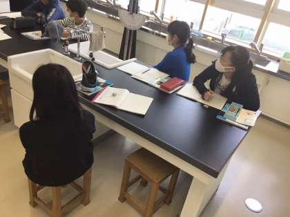 理科の時間です。底なしの集気ビンの中でろうそくを燃やすと、さあ実験してみよう。