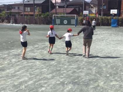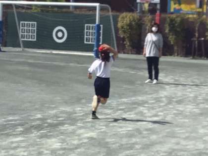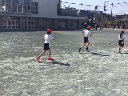 体育の時間です。久しぶりのマラソンですね。仲良く元気に走っています。