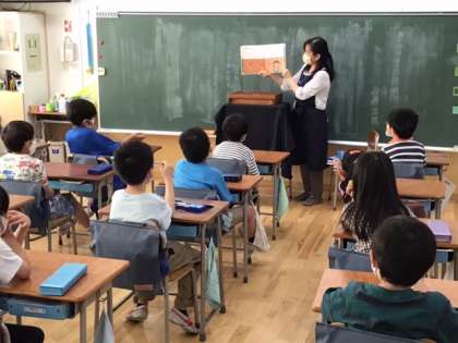 国語の時間です。司書の先生のすてきな読み聞かせに、思わず拍手が起きました。