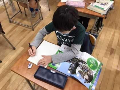 理科の時間です。「1日の気温と天気」晴れの日の1日の気温の変化について、予想を立て、その理由も考えています。