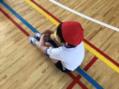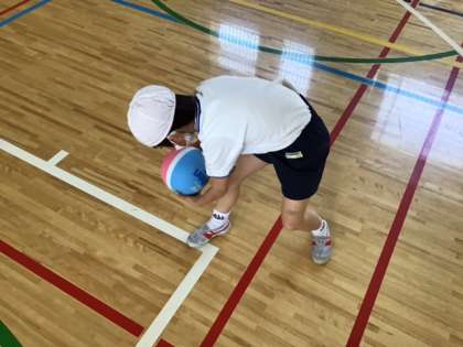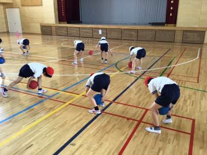 体育の時間です。ボールを使って、どんなことができるかな?