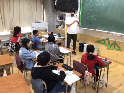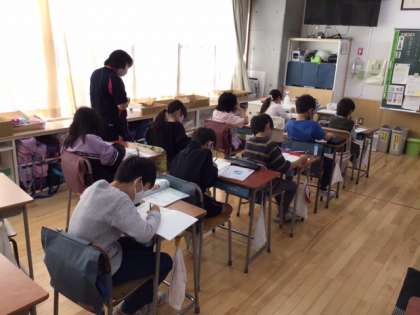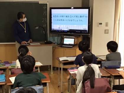 算数の時間です。「わり算の筆算」の仕方について、どう考えるかを交流しています。