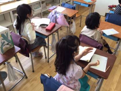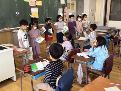 国語の時間です。「ふきのとう」の音読発表会です。発表している人の良いところをたくさん見つけてください。