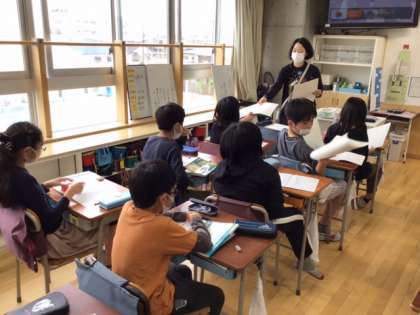 国語の時間です。「なまえをつけてよ」心情曲線を活用して、登場人物2人の距離を考えています。