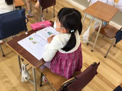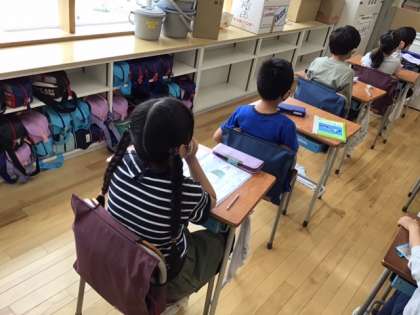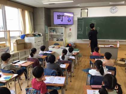 国語の時間です。映像テキストで予習をしてから、漢字の学習に取り組んでいます。