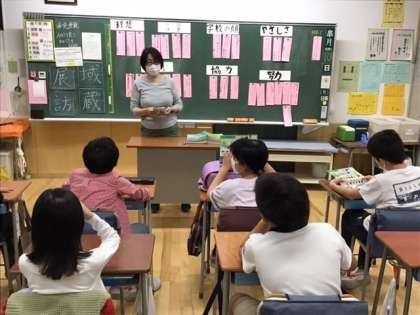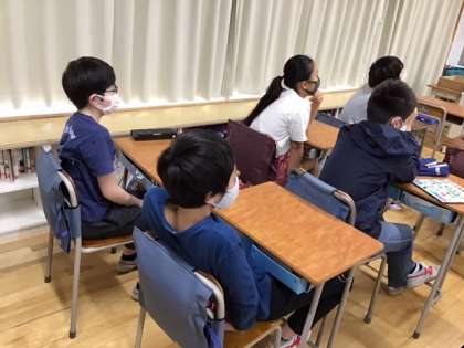 学級活動の時間です。この1ヶ月を振り返ると、6年生は、とてもやさしく1年生のお世話をしてくれました。