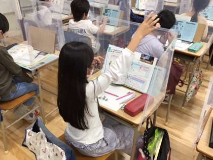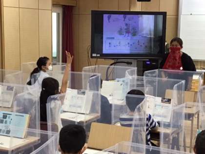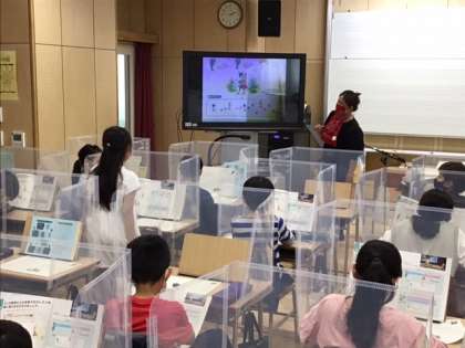 音楽の時間です。二重奏を聴いて、2人がどんな会話をしているのか想像しています。