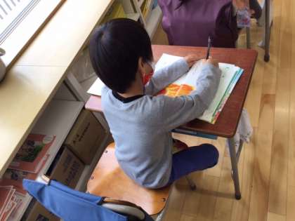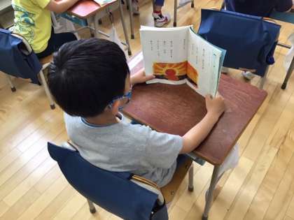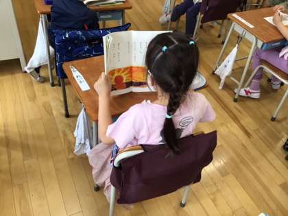 国語の時間です。「あさの おひさま」元気に音読しています。
