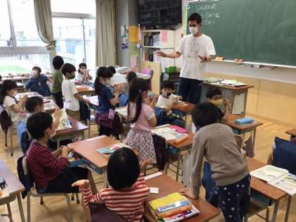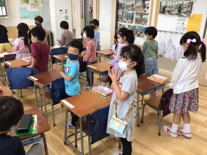 算数の時間です。「なんばんめ」前から3列めと前から3列の違いを考えています。