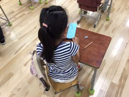 学級活動の時間です。当番活動の表示づくりに取り組んでいます。