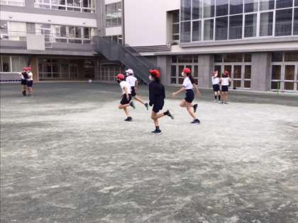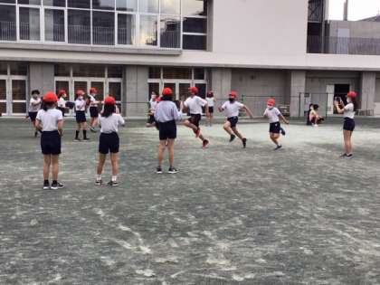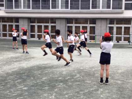 体育の時間です。短距離走に挑戦しています。ペアでランニングフォームを撮影し合って、映像を見ながらフォームの改善につなげています。