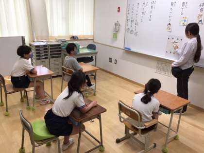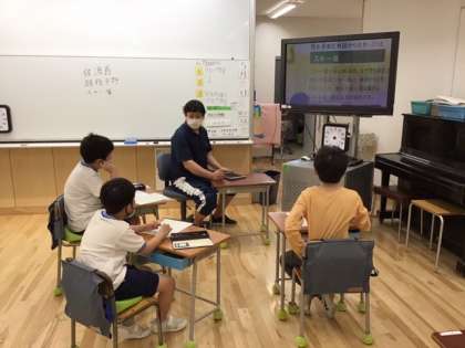 グループ学習の時間です。高学年は社会科で新潟県の学習を、低、中学年は漢字学習に取り組んでいます。