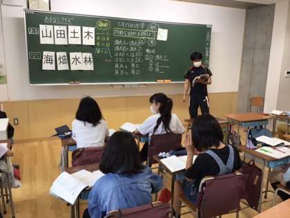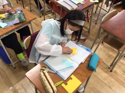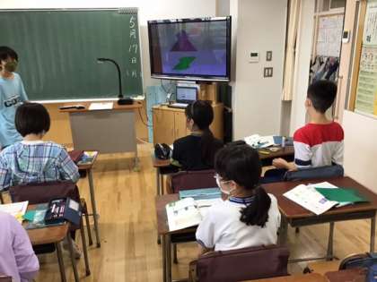 算数の時間です。「対称な図形」線対称と点対称な図形について学習していきます。