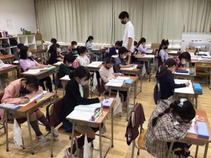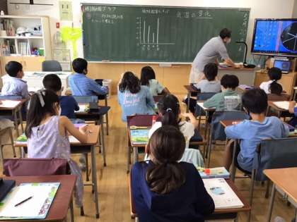 算数の時間です。1日の気温の変化を折れ線グラフを使って表しています。