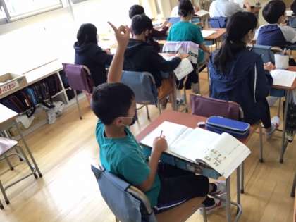 国語の時間です。「時計の時間と心の時間」文章の構成を考えながら、詳しく読み進めていきます。