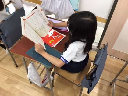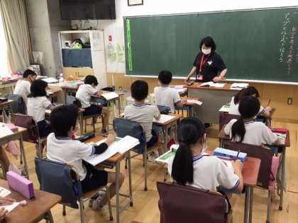 国語の時間です。「アップとルーズで伝える」学習のゴールは、筆者の考えをとらえて、自分の考えを発表できるようになることです。