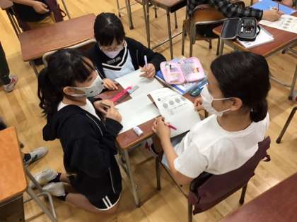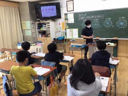 算数の時間です。正多角形は、対称な図形かどうかを考えています。