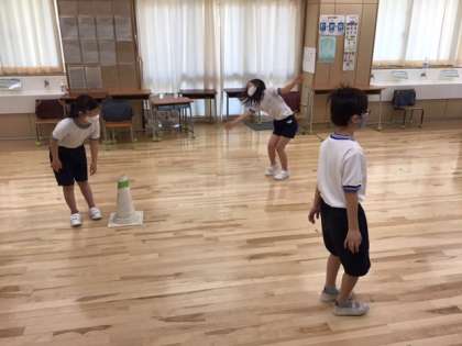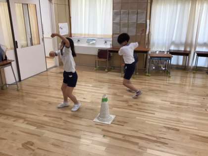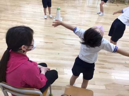リトミックの時間です。グニャグニャダンスに挑戦しています。感じが出ていて上手です。