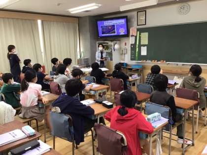 外国語の時間です。チャンツに乗って、日本のことを紹介していきます。