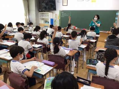 社会科の時間です。「日本の気候」調べて見ると、地域によって様々な気候の特徴があることがわかりますね。