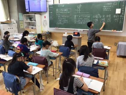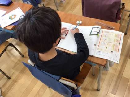 算数の時間です。繰り下がりのあるひき算の筆算を学習しています。