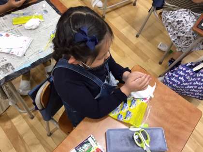 図工の時間です。「くっつきマスコット」磁石でくっつくマスコットを作ります。さて、どんな形にしようかな?