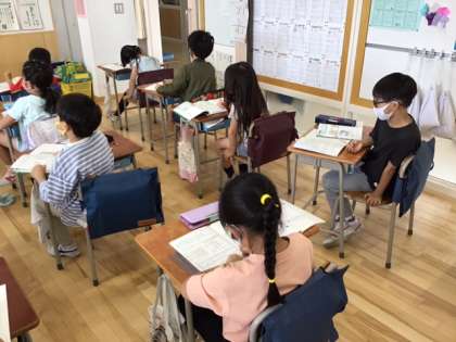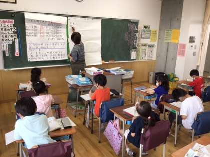 算数の時間です。「どちらが やすいかな?」どちらの店で買う方が安いかを説明しています。