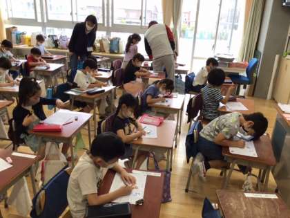 国語の時間です。ひらがなの学習にもすっかり慣れて、字の形が整ってきました。