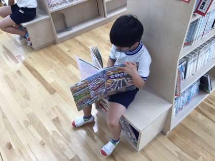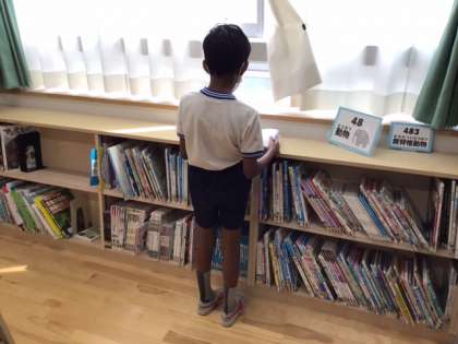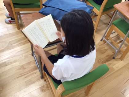 図書の時間です。本を手に取ったときの感触は、とても気持ちがいいですね。