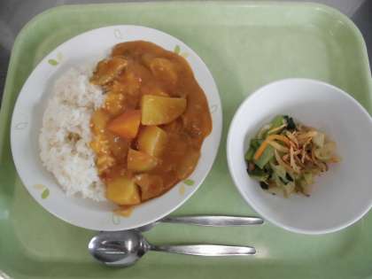 献立 カレーライス、ごぼうチップスサラダ、牛乳