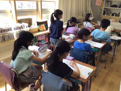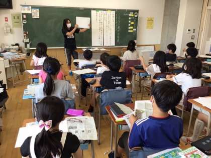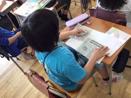 日本語の時間です。SDGsに関する新聞記事を切り抜き、意見や感想を書き込んでいきます。
