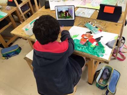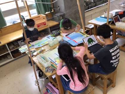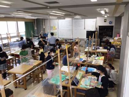 図工の時間です。「お気に入りの場所」自分が「伝えたい思い」を大切に気持ちを込めて描いていきます。